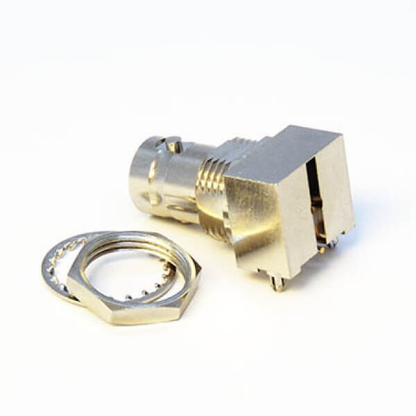 標簽:BNC連接器, 母頭, 彎式, 接PCB板, 穿墻安裝, 75歐姆, 鍍鎳