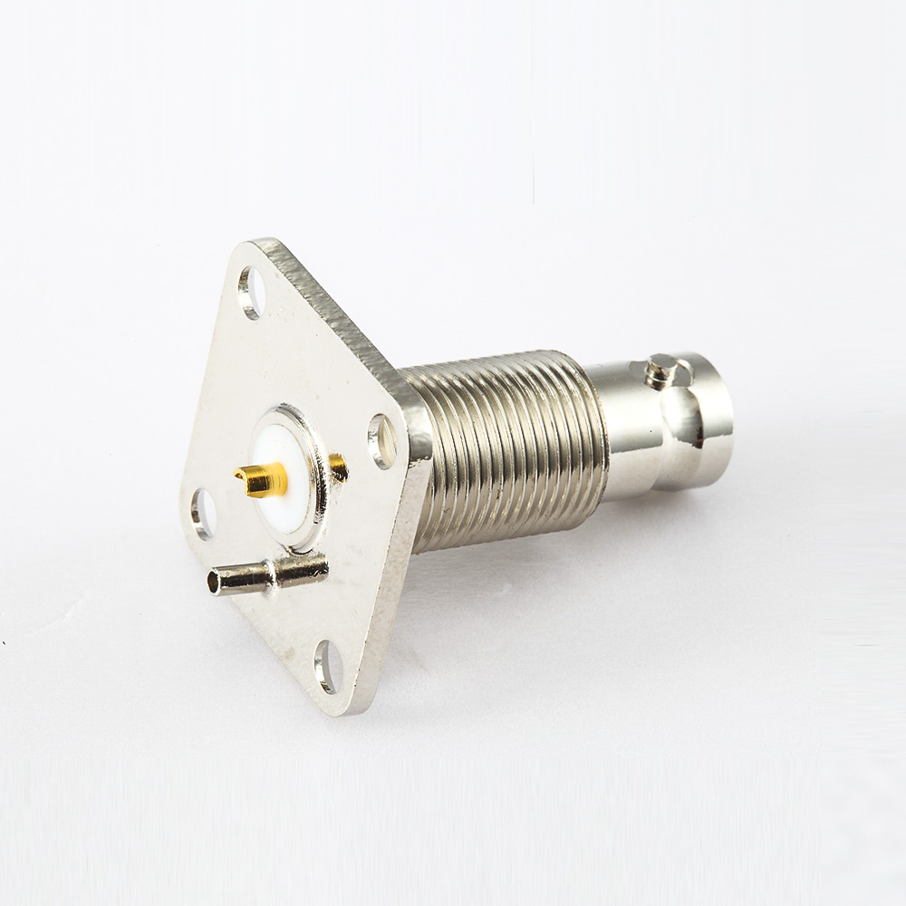 焊杯接線BNC連接器50Ω插座直板安裝前鎖穿墻4孔法蘭