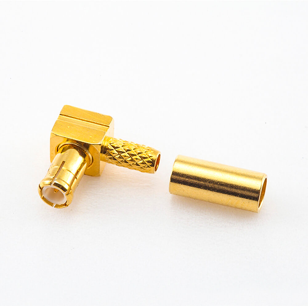 MCX接頭接線壓接式接頭公頭彎式銅鍍金50Ω