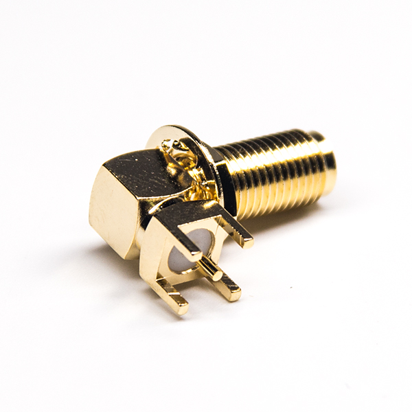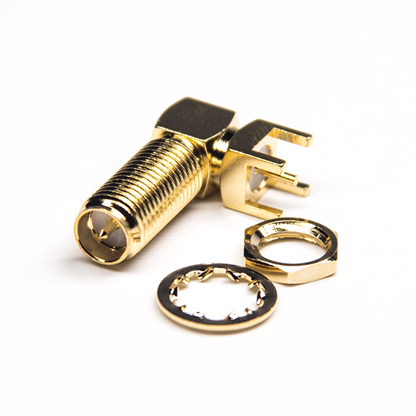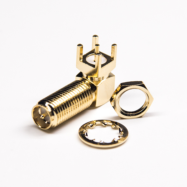 標簽:SMA連接器,母頭,90度,插板式,前鎖穿墻,面板安裝,鍍金,50歐姆,反極