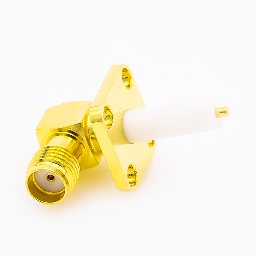 SMA 4孔法蘭PCB安裝焊板母頭彎式連接器