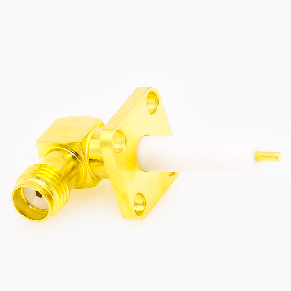 彎式SMA連接器母頭4孔法蘭焊板用于PCB安裝