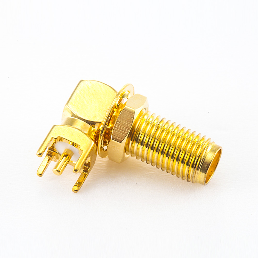 50歐姆SMA連接器母頭彎式PCB安裝插孔前鎖穿墻