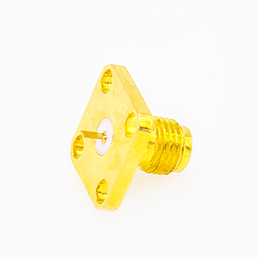 SMA連接器4孔法蘭PCB安裝焊板母頭直式