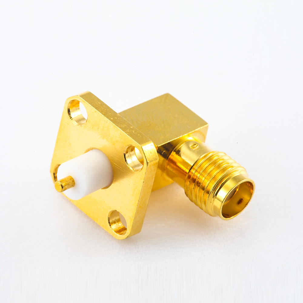 4孔法蘭PCB安裝SMA連接器母頭彎式面板安裝焊板