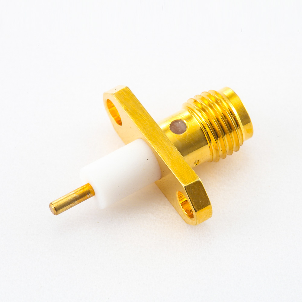 PCB SMA連接器母頭直式焊板面板安裝2孔法蘭