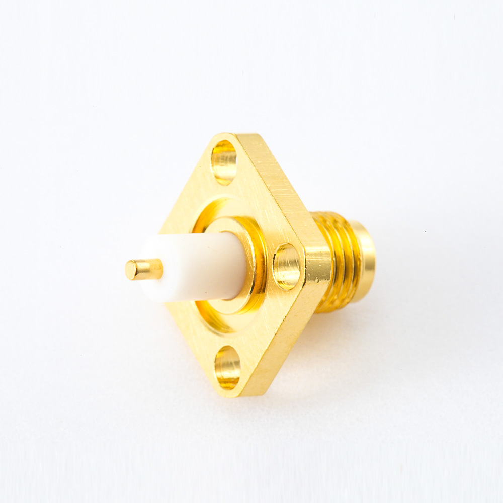 50歐姆SMA連接器PCB安裝母頭直式焊板4孔法蘭