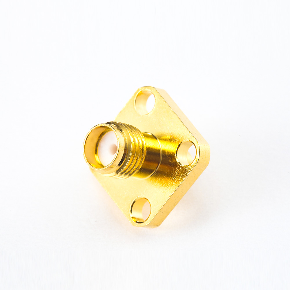 SMA母頭4孔法蘭連接器直式焊型接線半柔/半剛性2