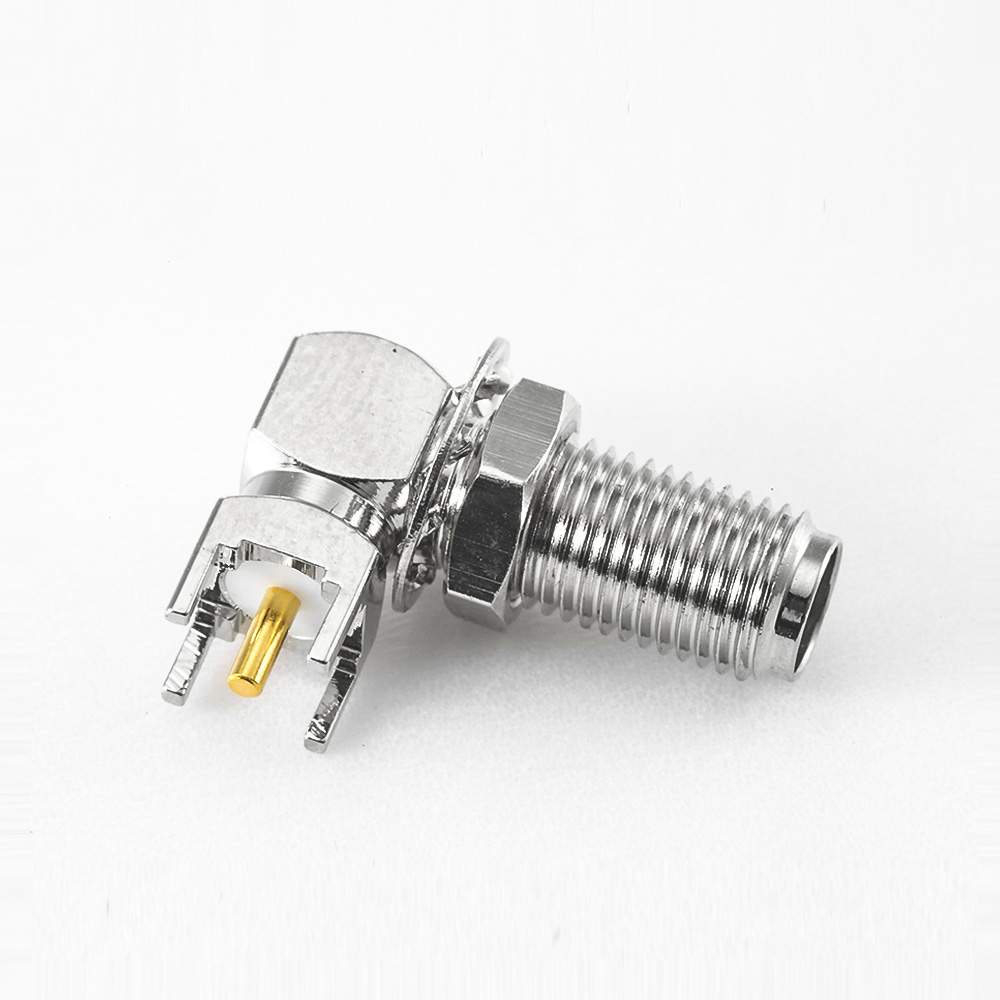 SMA母頭連接器彎式PCB安裝插孔前鎖穿墻
