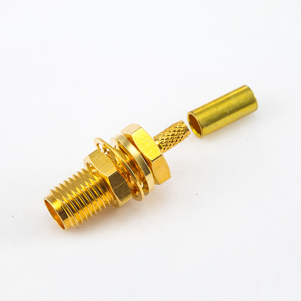 RG174 / RG316 / LMR100 SMA連接器接線壓接母頭直式面板安裝前鎖穿墻