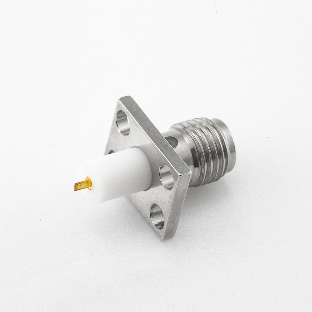 4孔法蘭SMA連接器母頭直式PCB安裝焊板鍍鎳