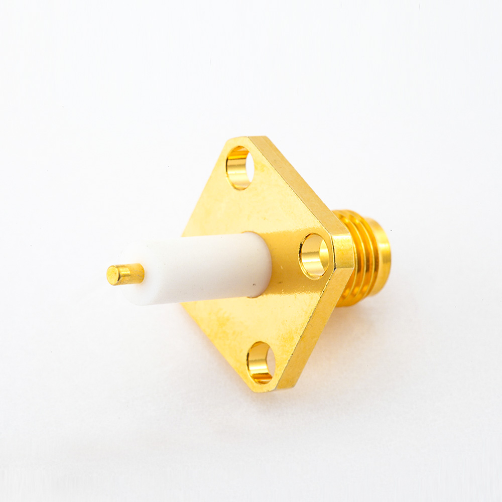 SMA母頭插孔連接器直式PCB安裝焊板4孔法蘭