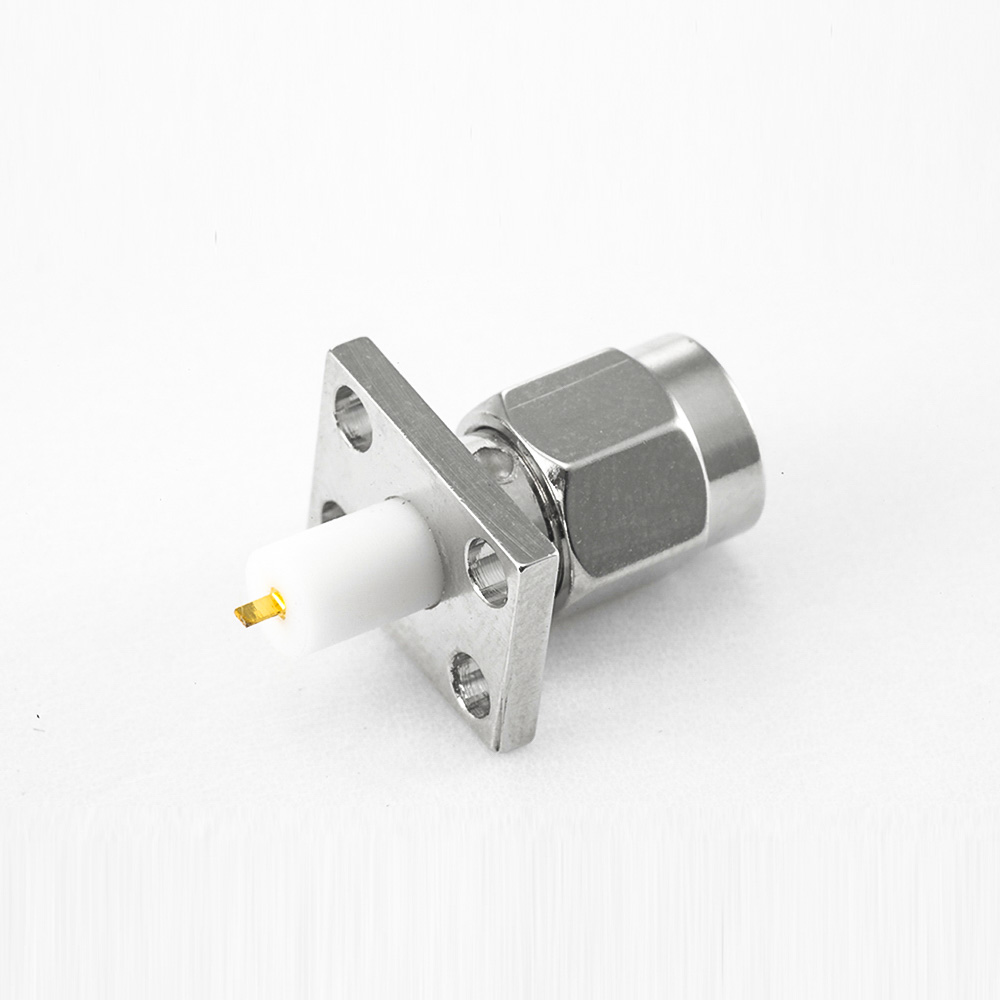 面板安裝SMA連接器公頭型直式PCB安裝焊板4孔法蘭