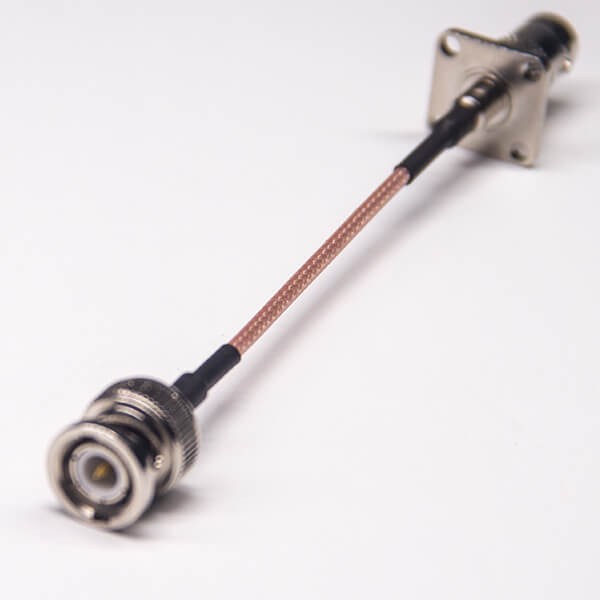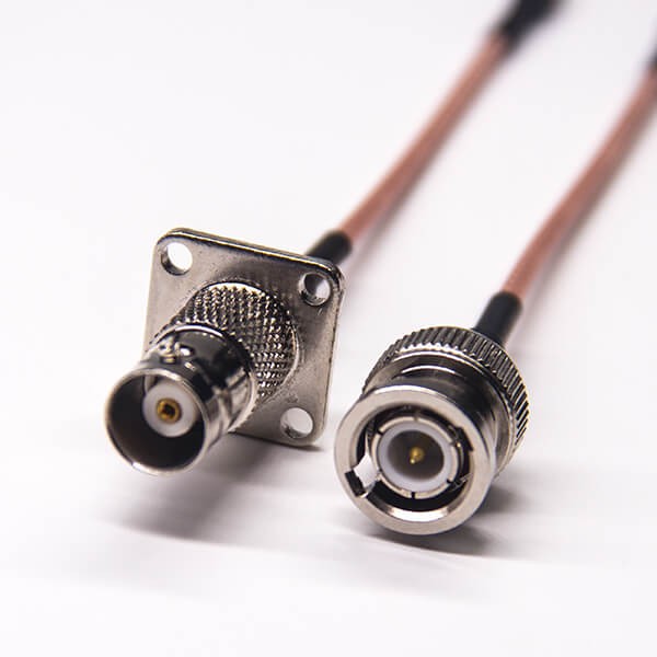 bnc線纜接頭180度轉bnc四孔法蘭母頭接RG316線