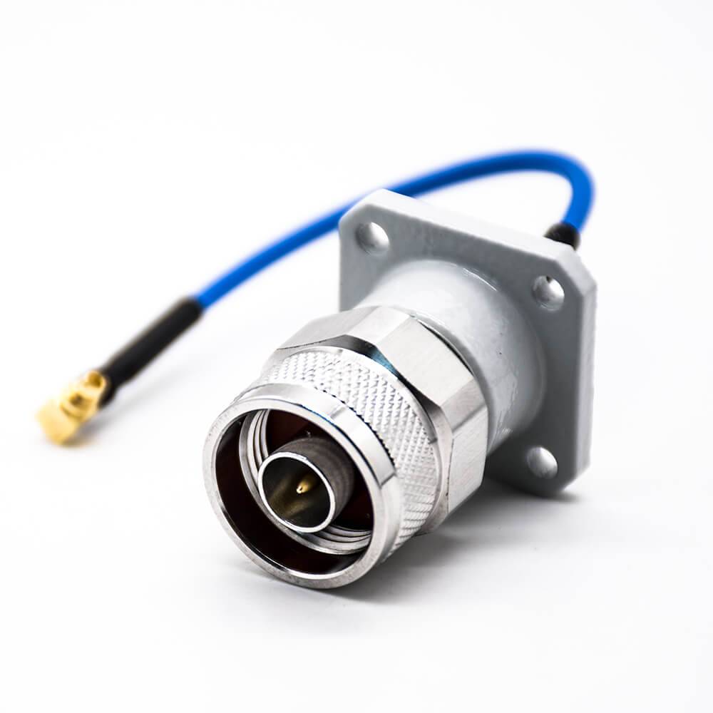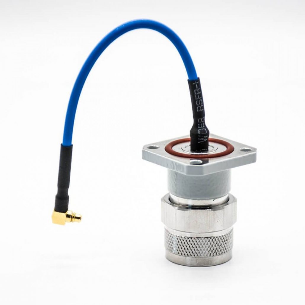 料號:EB-101-0651 標簽:RF線材,N頭,直式,公頭,面板安裝,四孔法蘭,MMCX,彎式,公頭,接線