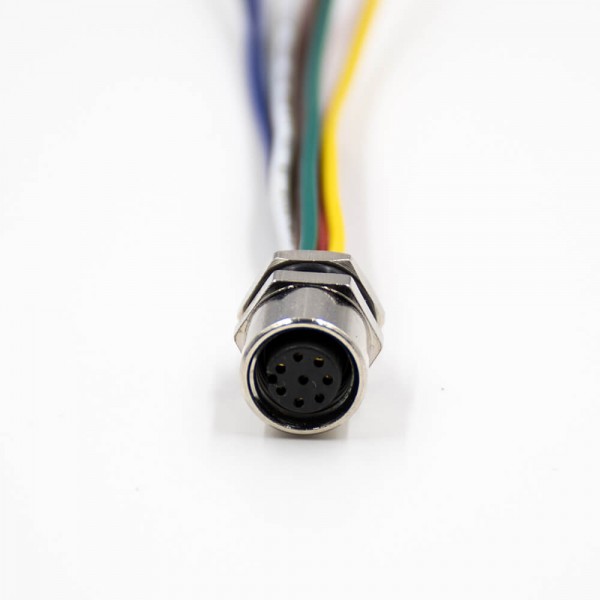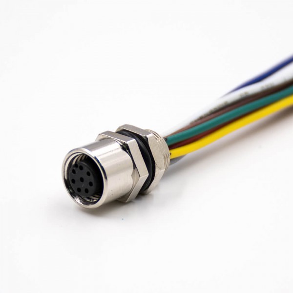 料號:EB-400-1208 標簽:M8,8芯,A扣,母頭,直式,后鎖板,板端插座,接線,焊接式,帶屏蔽,防水,26AWG,1M