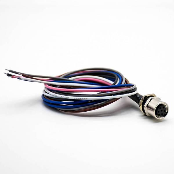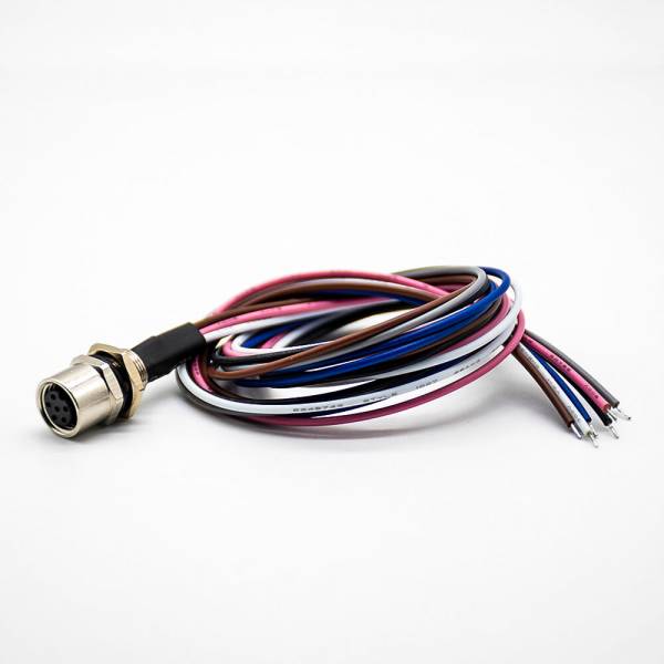 料號:EB-400-1273 標簽:M8,板端插座,6芯,直式,母頭板端,焊線,后鎖板,防水,帶屏蔽,0.2M