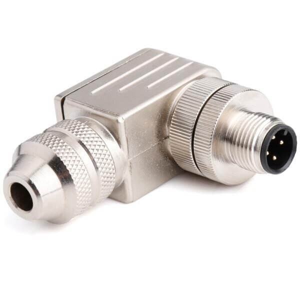 料號:EB-400-2023 標簽:M12現場組裝插頭, A編碼, 4芯, 公, 彎式, 接線, 螺絲鎖線, 帶屏蔽, 金屬外殼