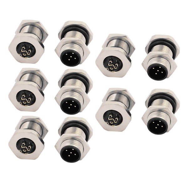 料號:EB-400-2161 標簽:M12,B 編碼,板端座子,前鎖板,5芯,公頭,直式,焊線