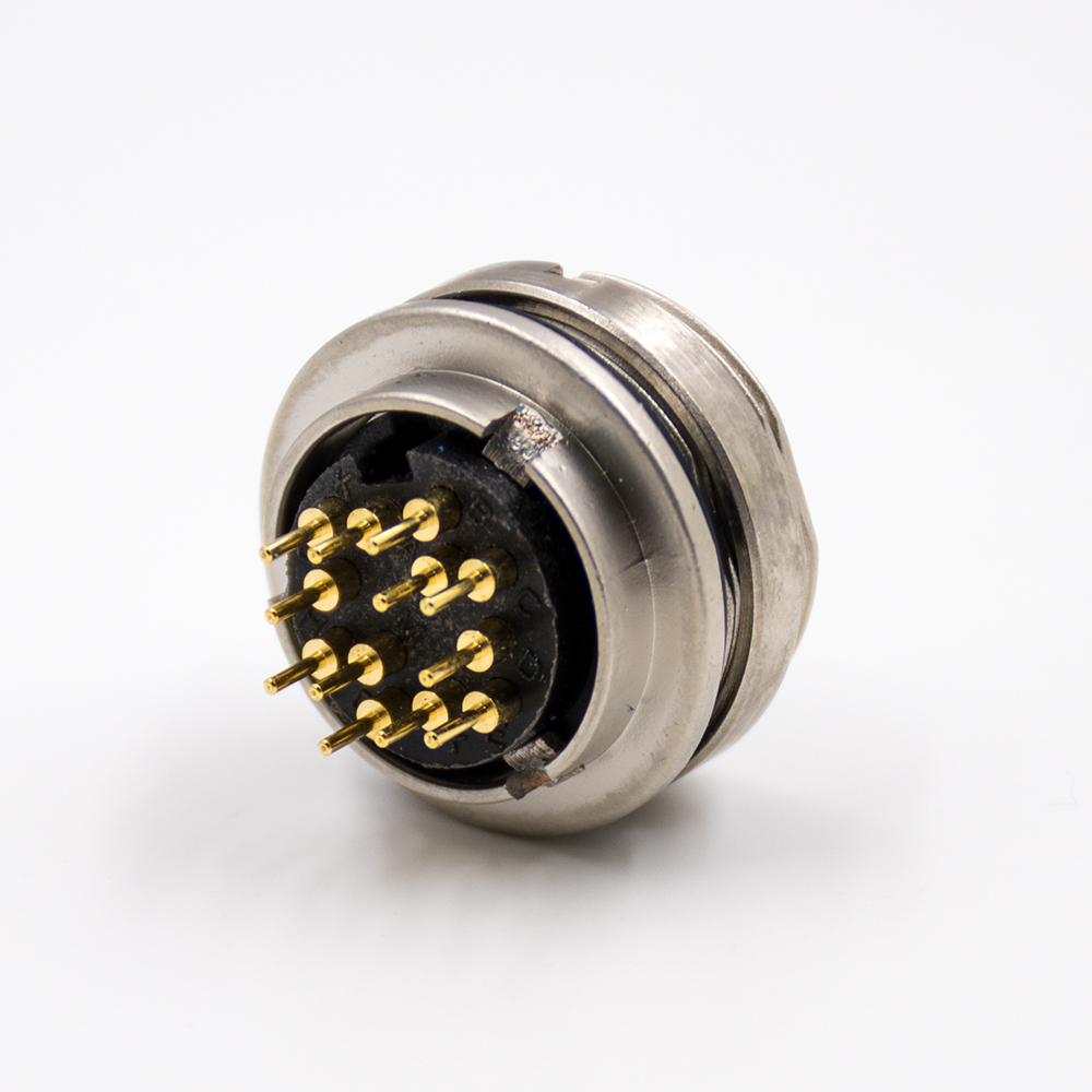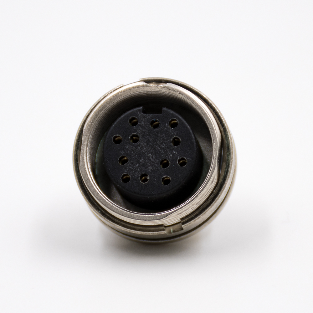 插座母頭M16板端插座A扣12芯直式前鎖板接PCB板傳感器連接器