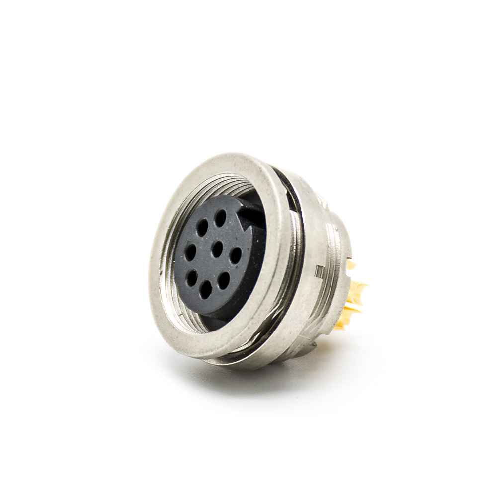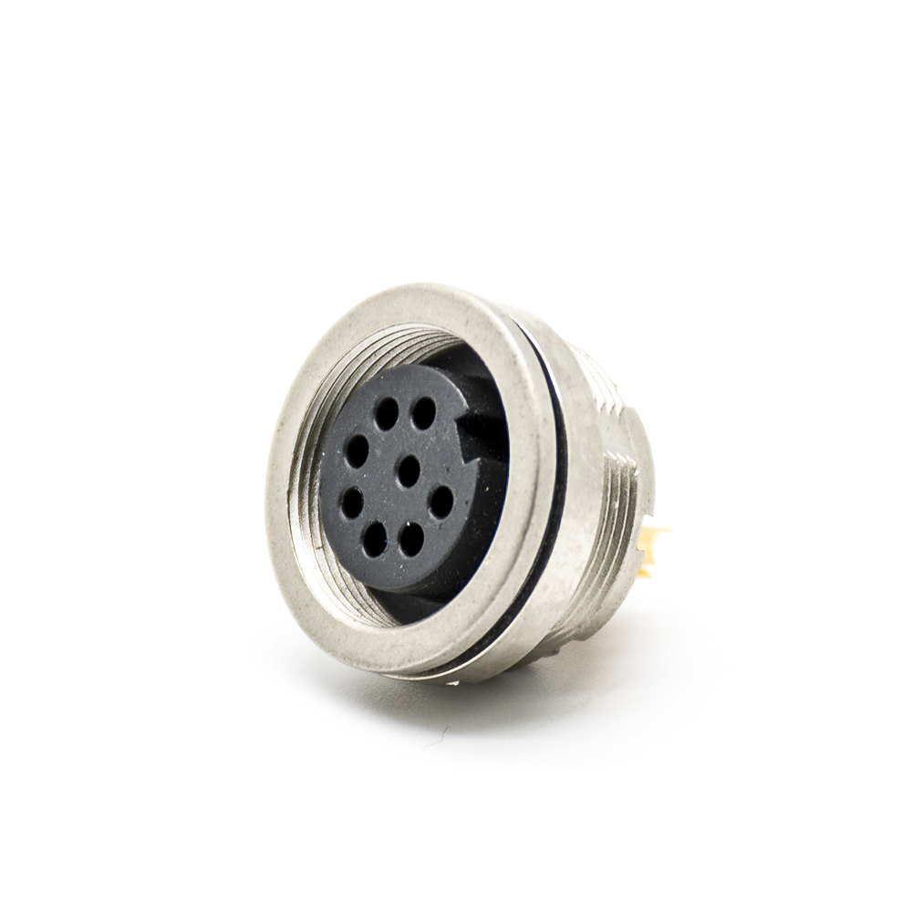 M16 8芯母插座連接器后鎖板焊線連接器直式