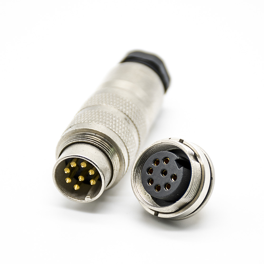 對接插頭M16連接器8芯公插頭母插座直式焊線前鎖板帶屏蔽