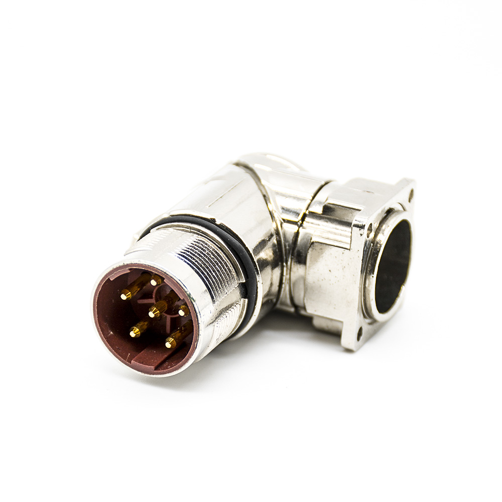 M23法蘭彎插座6芯公頭接線焊線帶屏蔽