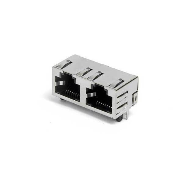 標(biāo)簽:RJ45連接器,插座,8P8C,2口,1*2,單層,彎式90°,鍍金,插孔,PCB板安裝,屏蔽,不帶燈,不帶濾波器,不帶POE,不防水