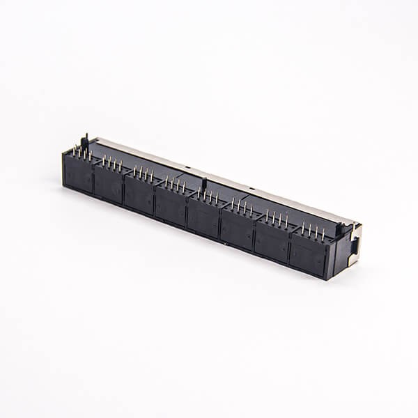 8口rj45插座全屏蔽以太網連接器彎式插板1*8