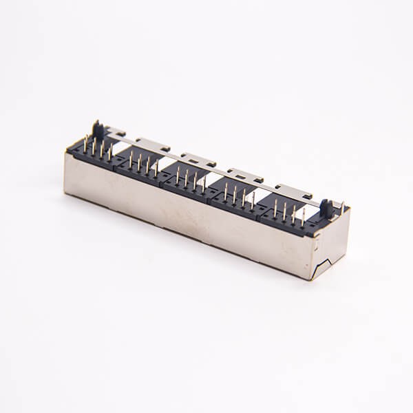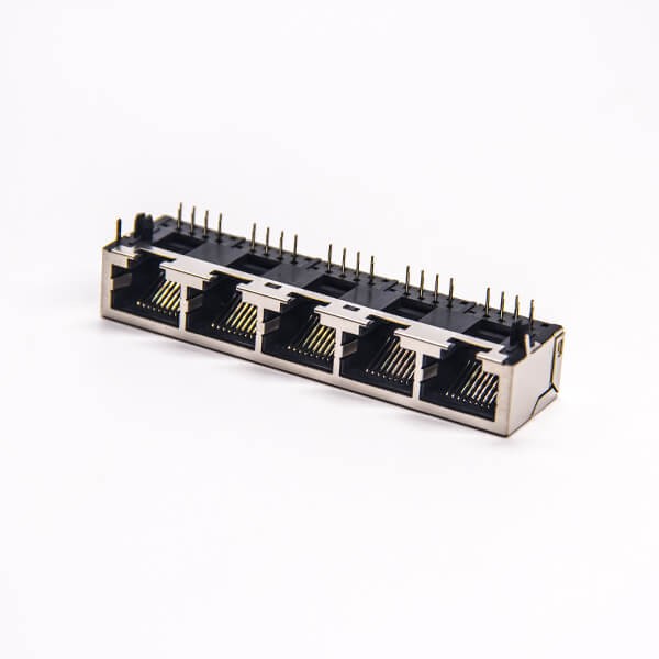 標簽:RJ45插座,8P8C,5端口,1*5,彎式90°,觸頭鍍金,插孔,PCB板安裝,帶屏蔽,不帶燈,不帶濾波