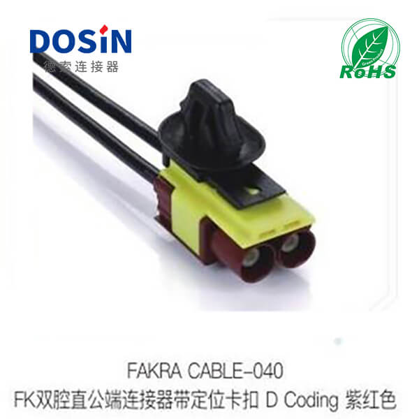 Fakra雙腔直公端連接器帶定位卡扣D-Coding紫紅色生產工廠
