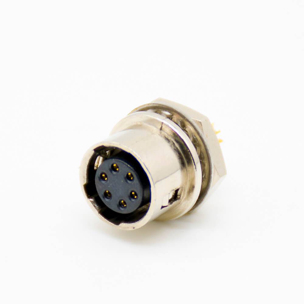 6芯反裝母插座針型直式焊杯后鎖板HR10系列微型推拉自鎖連接器