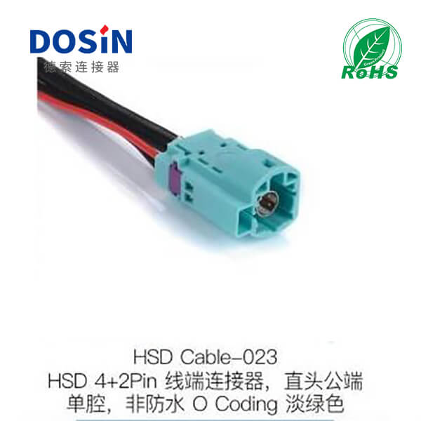 HSD-4+2Pin線端連接器直頭公端單腔非防水O-Coding淡綠色生產廠家