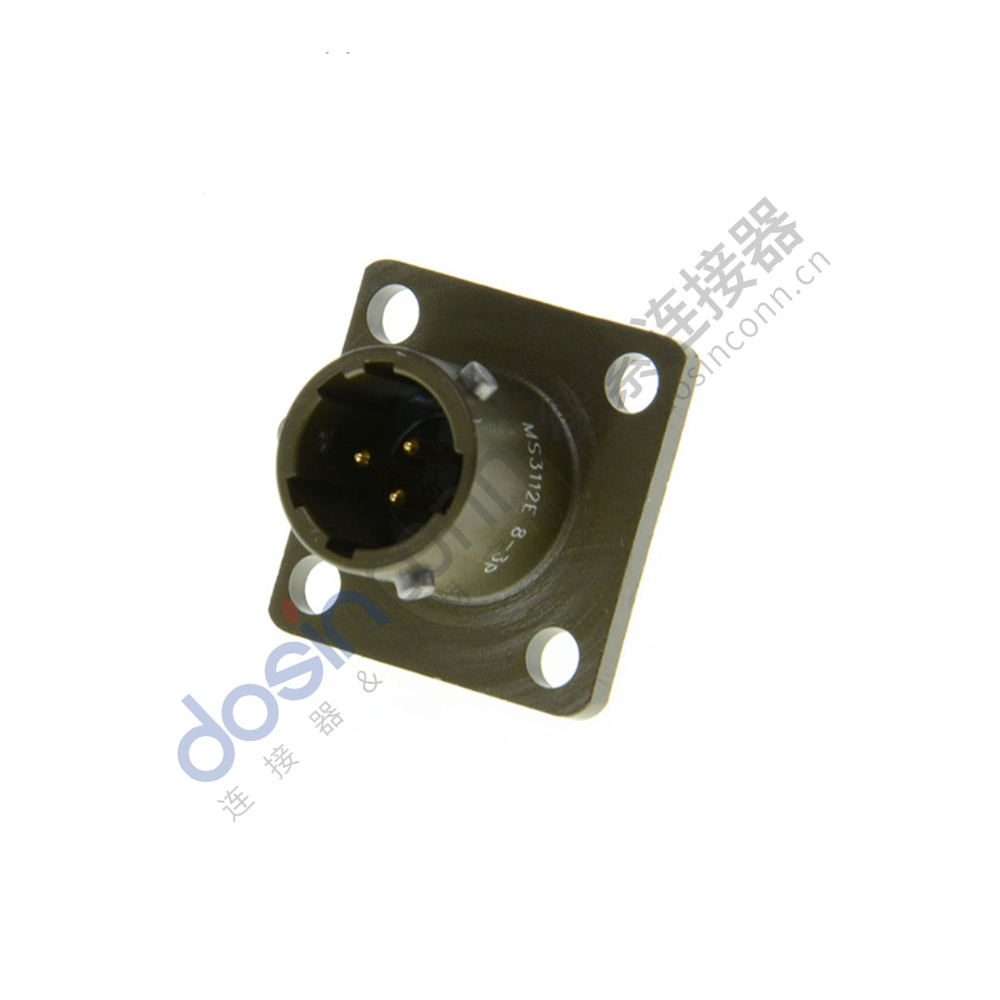 MS3112E8-3P系列連接器卡口式3芯針式方形法蘭插座8號(hào)殼體
