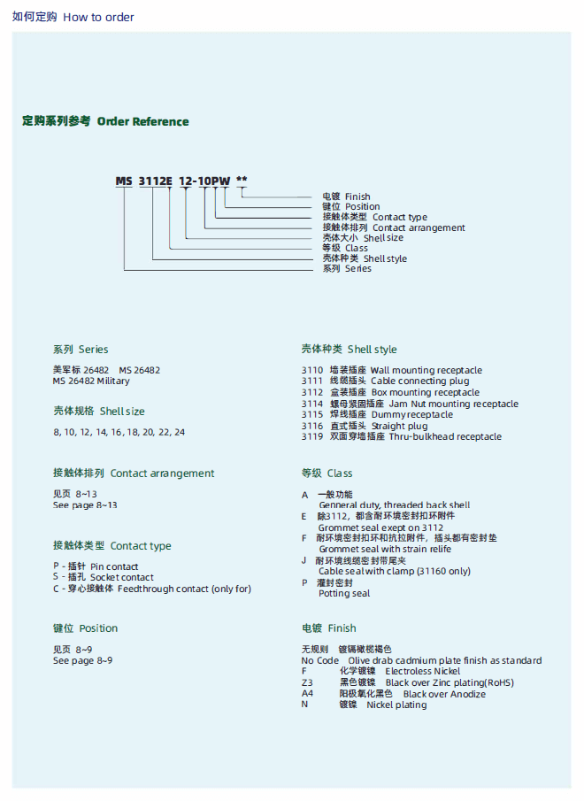 | 外殼類型 | MS3110(PT00) / MS3111(PT01) / MS3112(PT02)/MS3114(PT07) / MS3116(PT06) / MS3119(PTB) |