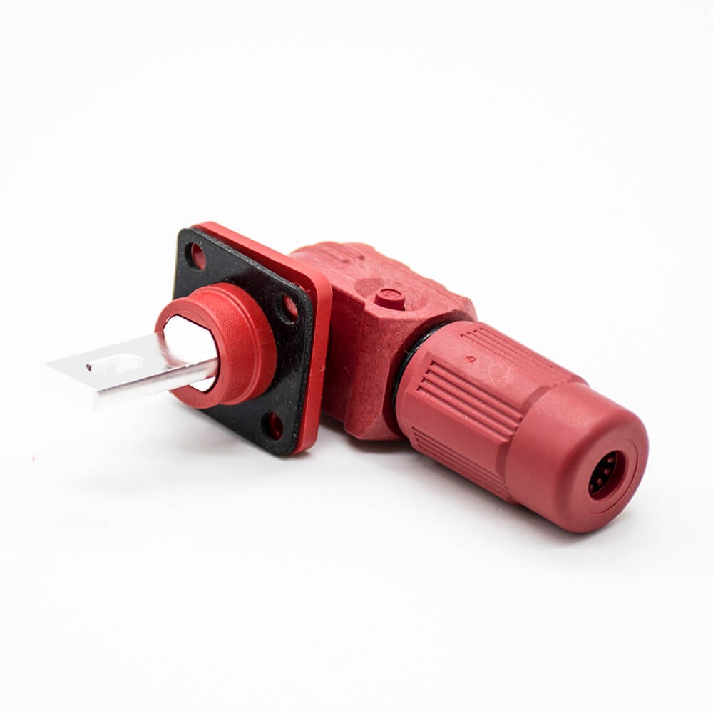 大電流防水連接器350A 12mm紅色IP65彎式插頭插座銅牌帶孔