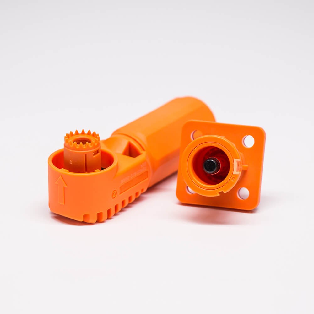 儲能電池連接器6mm橙色125A帶孔銅牌IP67防水彎式插頭插座