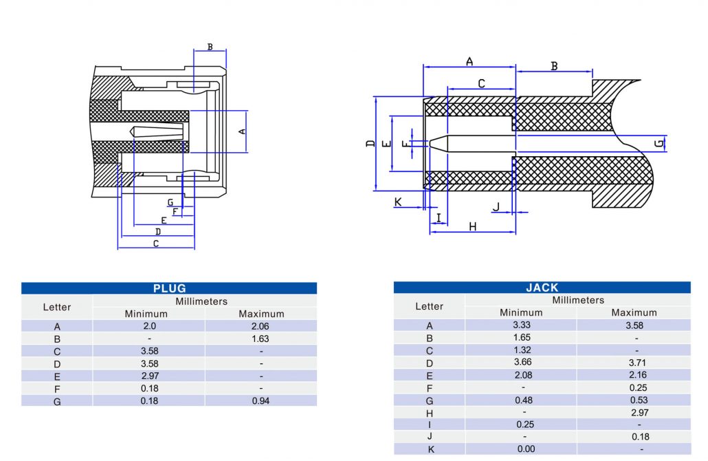 接RG142,RG405線纜時為250 V rms - 中心接觸電阻:?≦ 6.0mΩ (Milliohms max.)