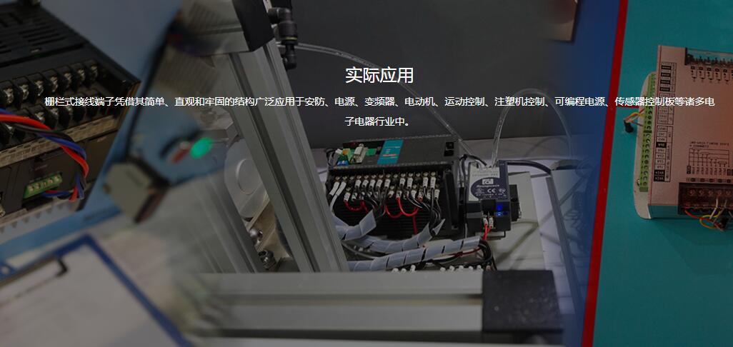 實際應用:柵欄式接線端子憑借其簡單、直觀和牢固的結構廣泛應用于安防、電源、變頻器、電動機、運動控制、注塑機控制、可編程電源、傳感器控制板等諸多電子電器行業(yè)中。