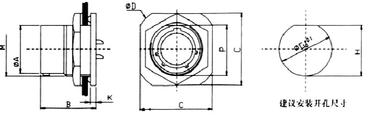 - 采用卡口連接,接觸件端接形式為焊接,插孔接觸件為冠簧插孔